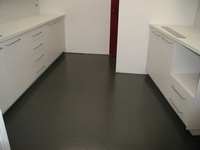 This is one of two Kitchens that had the sub-floor primed and leveled to remove uneveness when the slab was poured and the old glue marks left from previous stuckdown carpet.