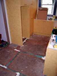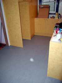 We fitted new Marmoleum over the existing Masonite underlay, this meant that we had to fill in the gaps left after the new kitchen fit out was finished.